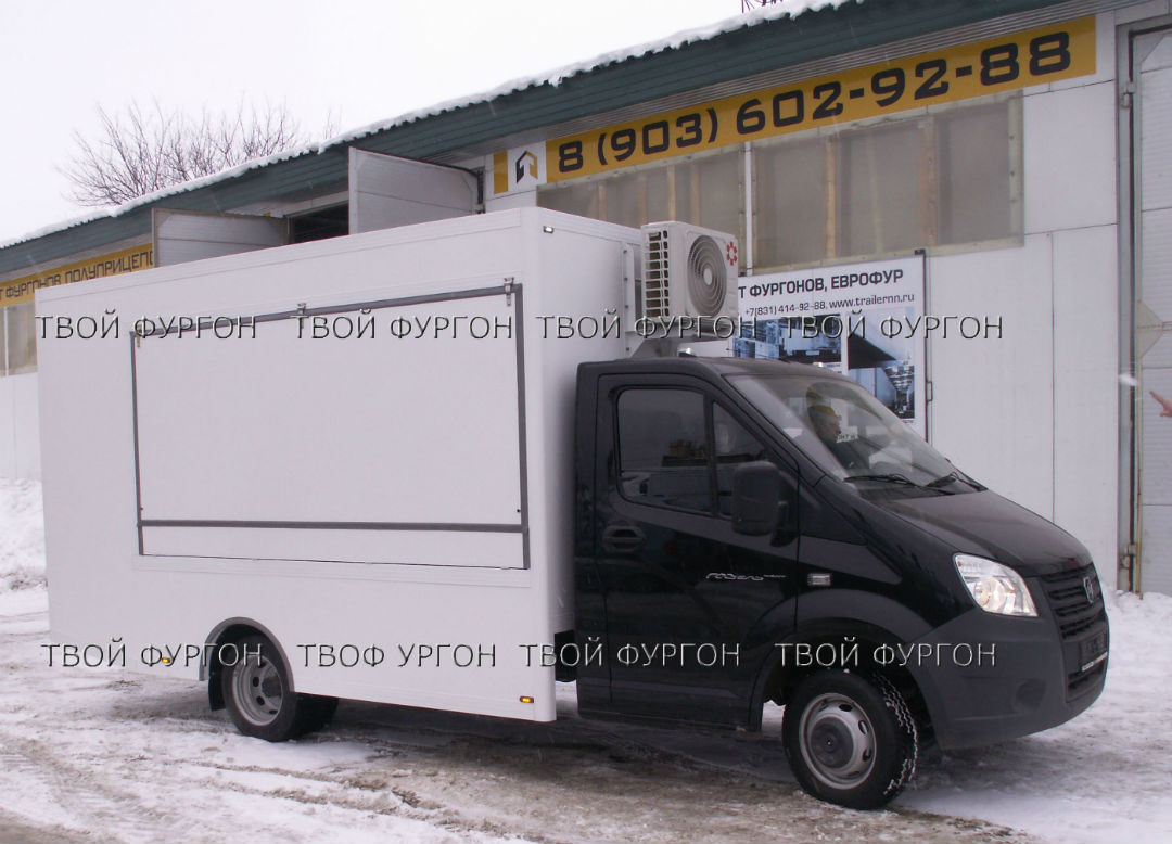 Нашим предприятием была изготовлена и полностью укомплектована оборудованием автолавка на шасси ГАЗель NEXT с дизельным двигателем. Нашим предприятием была изготовлена автолавка на шасси ГАЗель NEXT с дизельным двигателем. Основной особенностью данной автолавки является ее комплектация холодильным оборудованием: - Морозильный ларь (-28 С) - универсальный холодильный шкаф (+6/-15 С) - встроенный холодильный шкаф ( +5/-10 С) - демонстрационная витрина с запасниками (0/+5) Такое кол-во холодильных агрегатов позволяет продавать как охлажденную, так и замороженную продукцию. Все фотографии данной автолавки можно увидеть в разделе: Продукция/ Фургоны "Твой фургон"/ Автолавка/ Газель NEXT